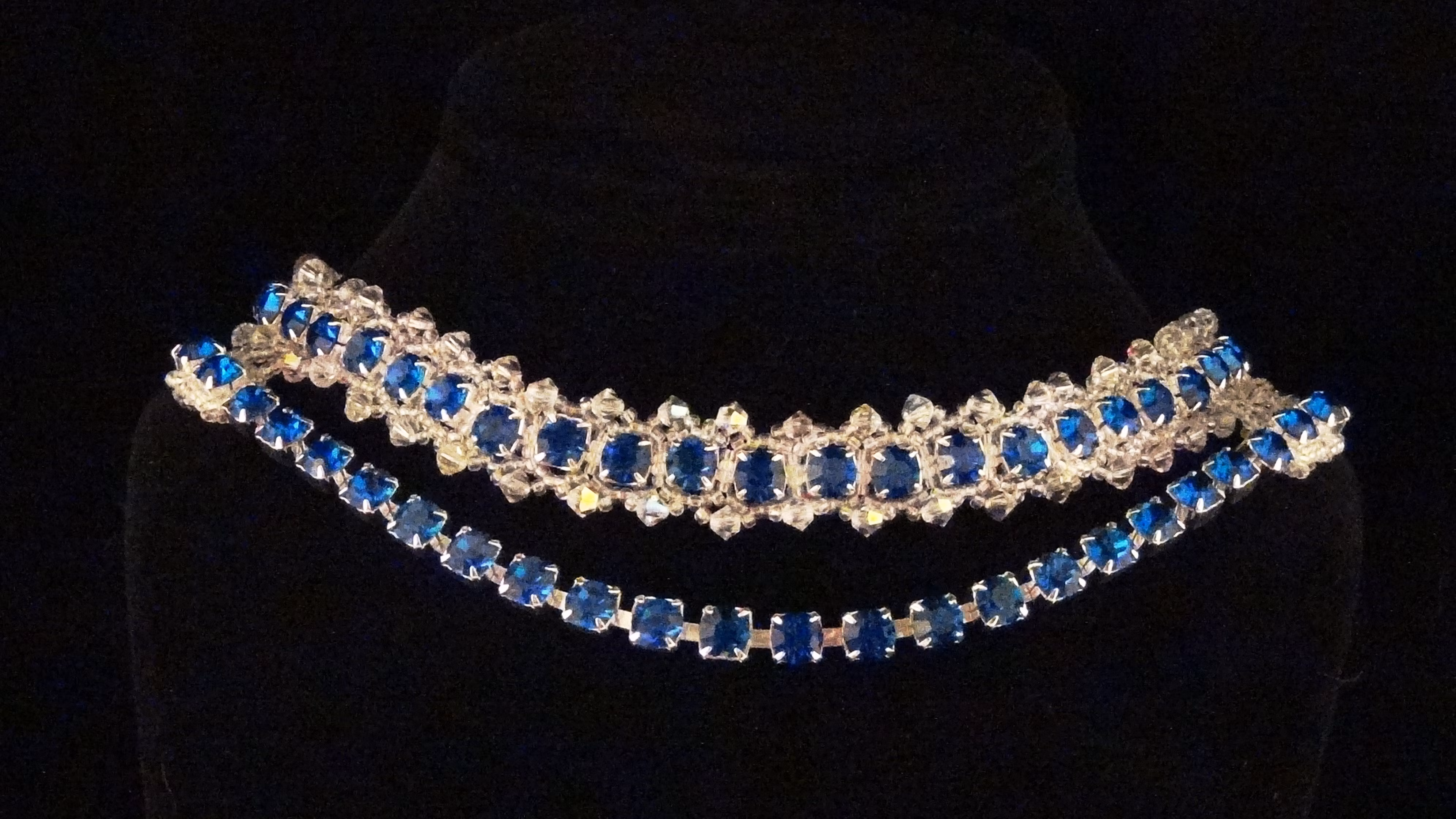 Sydd med små pärlor med ab-lyster och den övre raden kantas av vackra bicones i crystal ab.