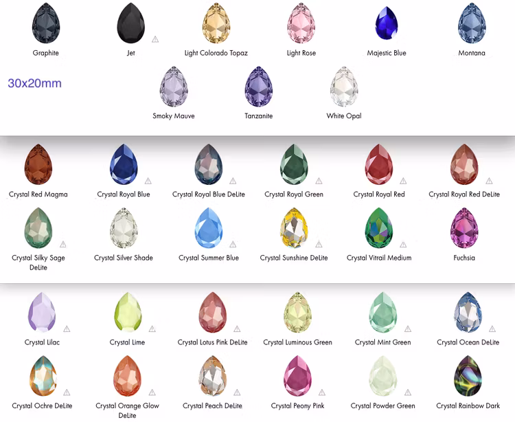 The color chart shows what colors are available, please note that if a color has a symbol next to it, then the color is not available in this 30x20mm size