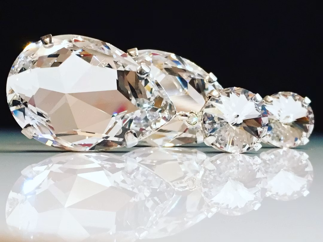 The round stone is a 12mm rivoli and the big drop is a fancy stone 20x30mm