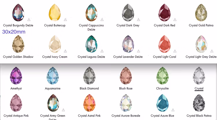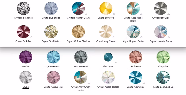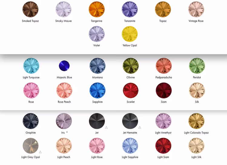 The color chart shows what colors are available in a 12mm size. Please note that if a color has a symbol next to it, then the color is not available in this size.