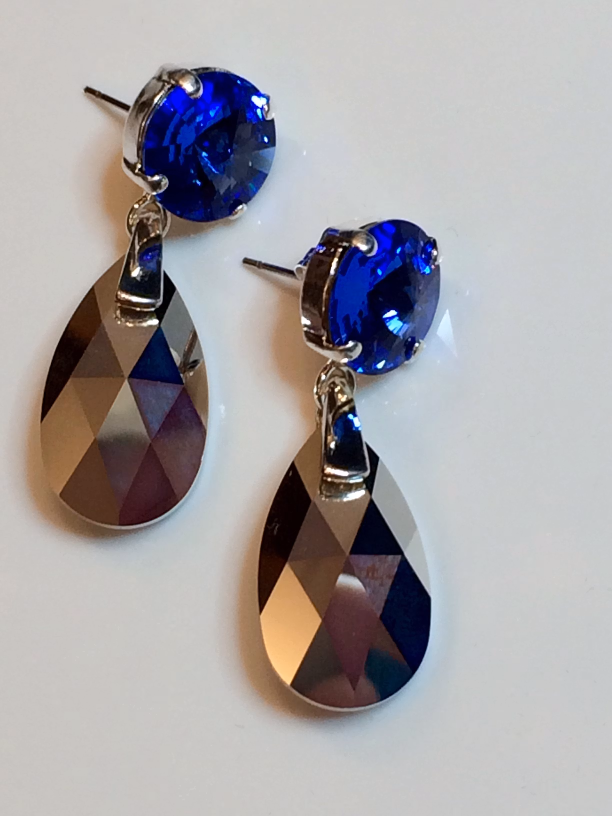 The round stone is in the color Sapphire and the drop has the color Light Chrome Don't hesitate to contact me if you want to design your own earrings or so